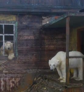 Ele encontrou famílias de ursos polares que aproveitaram a ausência humana para se apropriarem das residências em ruínas e, aparentemente, vivem uma vida de luxo, já que, até aquele momento, nenhum humano tinha aparecido para atrapalhar.