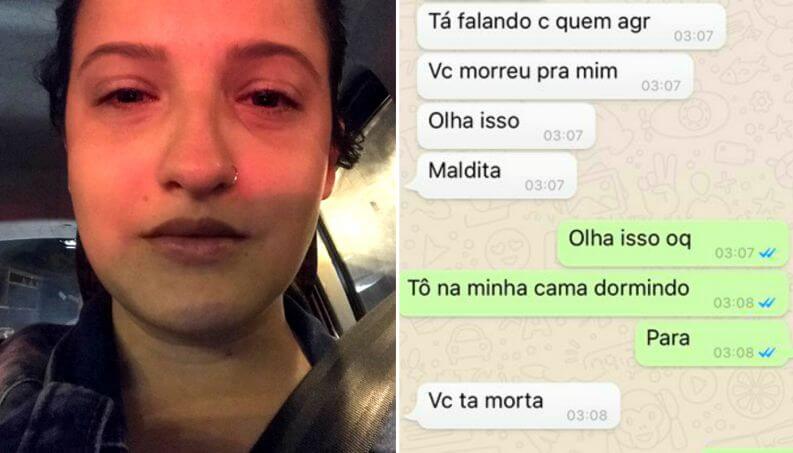 “Vadia”, “Vagabunda”, “Maldita”, “Desgraçada”, “Filha da Puta”, “Biscate”, “Mentirosa de merda”, “Você tá fodida na minha mão”, “Que vontade de quebrar você no meio”, “Você tá morta”.