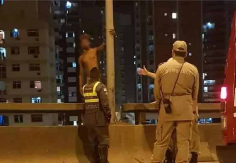 Moradores próximos soltavam fogos na direção do homem pendurado.